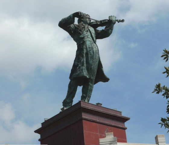 我在你的歌声里毕业祖国在你的旋律中站起然而,隔了这么多年后很老的我才来看你你携一把小提琴离家一脚便踏入时代的风雨 容不得回味童年的稚嫩 来不及完成少年的学期 俯身听到苦难的你 嘿呦嘿呦,音符震动大地 你和报童一起等派报那是黎明前最冷的夜里其实,你还是个孩子啊却把民族复兴的巨浪掀起青春曾这样豪华绽放人生就这样美丽无比为什么,为什么啊短短二十三个年头生命之音便戛然而止难道那个叫历史的老人只给你一个辉煌的开始在你故居的铜像旁我怎能不埋下头 算一算自己的年纪今天,我来了 以长你两倍却是后来者的名义 在你的像前写